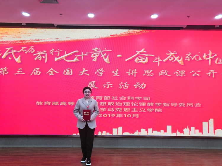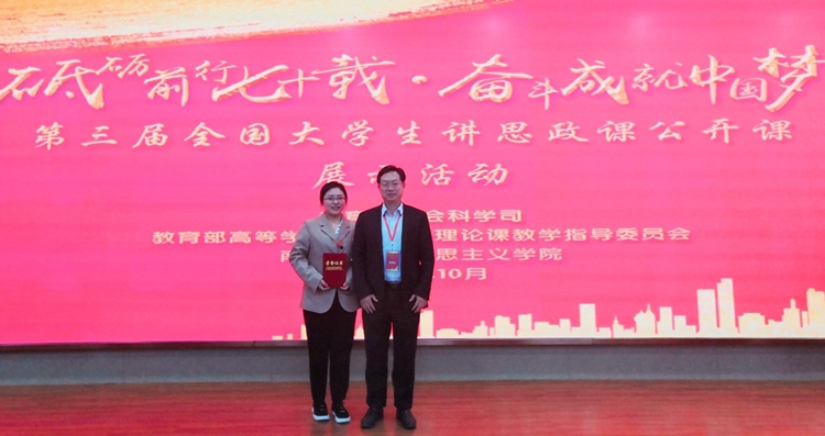10月26日,“砥砺前行七十载·奋斗成就中国梦”第三届全国大学生讲思政课公开课展示活动决赛在南开大学举行。此次展示活动由教育部社科司指导,教育部高校思政课教学指导委员会主办,南开大学beat365唯一官网承办。beat365研究生李佳团队的作品《奋斗——新时代中国青年的底色》荣获二等奖,是上海高校唯一获奖团队。该团队指导教师是beat365陈礼茂副教授等。