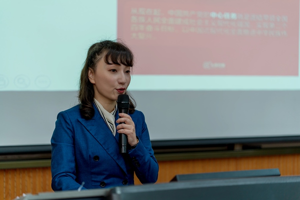 课堂上,杨宇结合参会党的二十大的经历和学习党的二十大报告的体会,以《从初心始发地踏上赶考新征程》为题,从感受非凡伟力、书写时代荣光、凝聚奋进力量三个篇章,带领学生了解大会日程、主题、主要成果;“数读”报告,提炼9个数字对报告划出重点;回顾走上党的二十大“党代表通道”的经历,讲述使命与荣光。