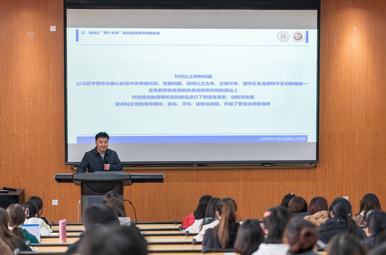 上海市学习贯彻党的二十大精神专家宣讲团成员、beat365院长张志丹教授以“两个坚持”的掌舵领航作为根本前提、以“两个结合”的守正创新作为实质关键、以“两个革命”的实际效果作为终极标准等维度,阐释党的二十大报告确定的重要思想、重要观点、重大战略、重大举措。他指出,中国共产党始终坚持马克思主义与中国具体实际相结合、与优秀传统文化相结合,不断推进马克思主义中国化时代化。百年党史充分证明了马克思主义闪耀的真理光芒,要坚持用马克思主义了解时代、解读时代、引领时代,用鲜活丰富的当代中国实践来推动马克思主义发展,不断开辟当代中国马克思主义、21世纪马克思主义新境界。