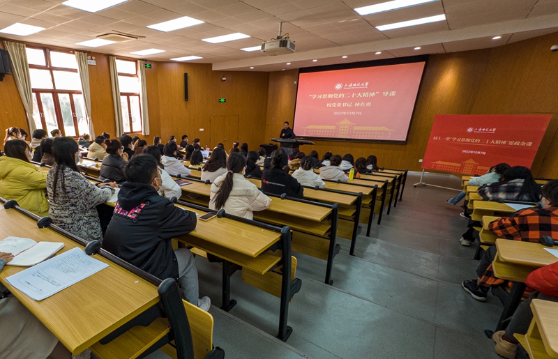 为进一步推进党的二十大精神进思政课,12月7日,学校举行同上一堂“学习贯彻党的二十大精神”思政金课。校党委书记林在勇,党的二十大代表、中共一大纪念馆宣传教育部主任杨宇,beat365院长张志丹教授共同走进思政课堂,引导学生原原本本学习领会党的二十大精神。beat365青年教师徐立波主持。