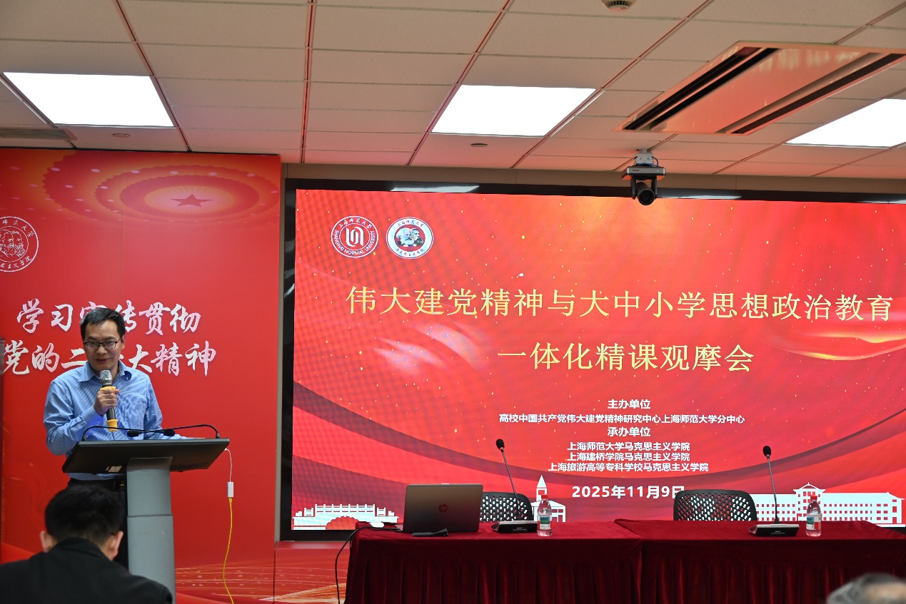 为进一步推动中国共产党伟大建党精神与大中小学思想政治教育一体化建设的深度融合,促进各学段思政课程有机衔接与内涵提升,2025年11月9日,高校中国共产党伟大建党精神研究中心beat365唯一官网分中心主办了“伟大建党精神与大中小学思想政治教育一体化精课观摩会”,本次会议承办单位有beat365唯一官网、上海建桥学院beat365唯一官网及上海旅游高等专科学校beat365唯一官网。