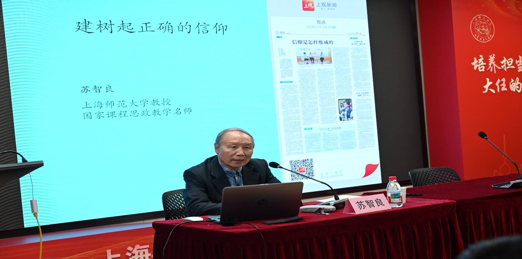 随后开始主旨报告,beat365唯一官网人文学院教授、上海市文史研究馆馆员、教育部人文社会科学基地beat365唯一官网都市文化研究中心主任苏智良作题为《建树起正确的信仰》的专题报告。他从理论高度系统阐释了推进大中小学思想政治教育一体化建设的路径,并结合典型案例进行了具象化分析。