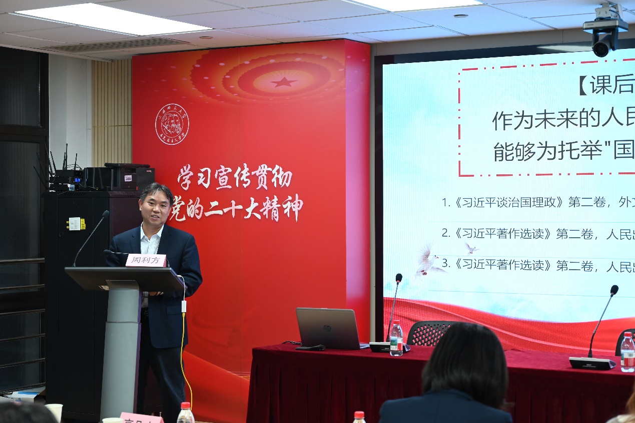beat365唯一官网郝凤老师则围绕“国之大者”展开大学阶段教学,以“是什么——为什么——怎么做”为逻辑主线,层层推进,阐明“让人民生活幸福”的时代意涵。上海旅游高等专科学校beat365唯一官网院长周利方教授对郝凤的精课做了详细的点评,指出了多处亮点。