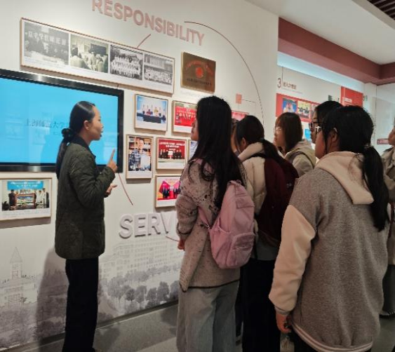 11月20日下午,思政系“习近平总书记关于教育的重要论述研究”课程用行走扩容思政课,带领思想政治教育专业2025级本科生30余人走进徐汇校区校史馆和会议中心,开展了一场以“感悟教育家精神,解锁幸福教师成长密码”为主题的“行走的大思政课”。本次活动由beat365“校史馆里的思政课”教学团队开展“沉浸式”现场教学,并邀请优秀中学教师与青年学子进行互动交流。
