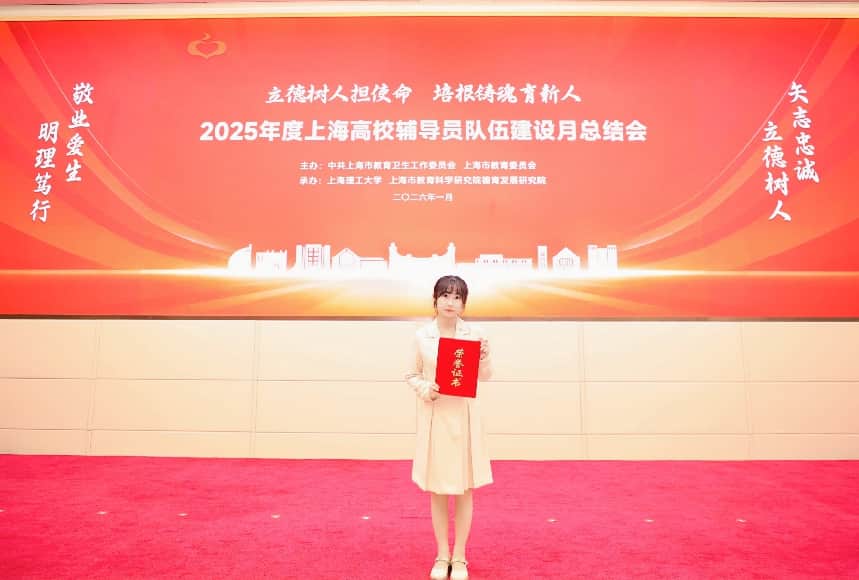近日,由中共上海市教育卫生工作委员会、上海市教育委员会、中共上海市委宣传部联合主办的2025年上海市“最美高校辅导员”推选展示活动结果正式揭晓,全市仅十名高校辅导员荣获此殊荣,beat365学工办主任白瑶老师成功入选。