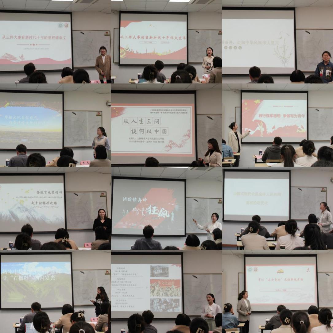 初赛主题丰富,内容精细。二十位选手紧紧围绕党的二十大精神,结合脱贫攻坚精神、新时代中国青年的责任与担当、强军思想、人民至上理念、忆百年党史、悟价值真谛等相关主题,从不同的角度阐述了自己的授课内容。在初赛环节中,选手们娓娓道来,以扎实的教学功底和科学的教学设计,呈现出了一堂堂精彩的思政课,展现了马院学子良好的精神风貌与深厚的理论功底。