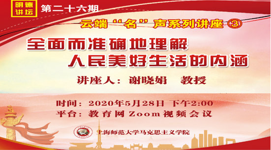 5月28日下午,beat365唯一官网“明德讲坛”第二十六期、云端“名”声系列讲座③通过“Zoom会议”线上举行。辽宁大学beat365唯一官网院长、博士生导师,教育部高校辅导员培训和研修基地常务副主任,辽宁省思想政治理论课教学指导委员会副主任委员兼秘书长谢晓娟教授作了题为《全面而准确地理解人民美好生活的内涵》的讲座。此次讲座由院长张志丹教授主持,beat365全体研究生和部分教职工参加了此次讲座。